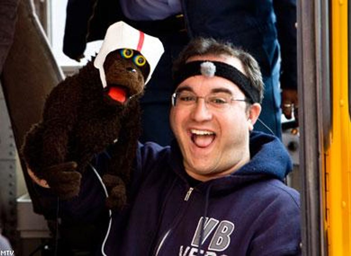 Take one fabricated American (who happens to be an ape), throw him into the world of gay culture, and watch what he'll do to get ahead in show business. In Monday night's episode of MTV's new faux-reality show Warren the Ape, Warren goes gay to resuscitate his fledgling acting career. Already in addiction counseling with Dr. Drew Pinsky (a series regular), Warren tries to put one over on the good doc and Access Hollywood's Nancy O'Dell, who also appears in the episode. Perez Hilton also pops up in a pivotal cameo doing what Perez does best: "blabbing all to the world!"