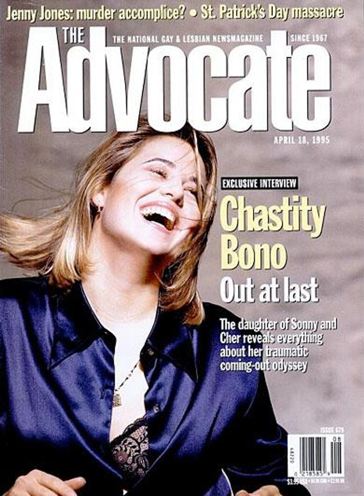 "My mother wants to talk to you." It was a sentence I hadn't heard since I was a schoolyard bully. Only this time, the kid's mom was Cher. Chastity Bono had poked her head in to my office at The Advocate where I was working as Editor in Chief. Bono joined our staff in the summer of 1995 as an occasional columnist and contributing writer. I had offered her the gig following a cover story about her that had appeared in April of that year. "Please talk to her," the recently out lesbian said, flashing an infectious grin. "She wants to make sure you'll take good care of me." Chastity continued, as if reading from a prompter: "Mom is concerned that you're a radical journalist and will sweep me up in a counterculture and make me a symbol of something."