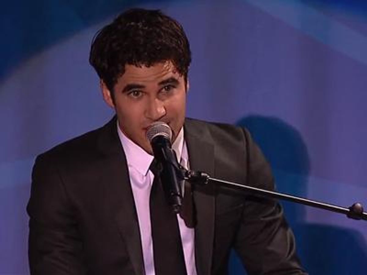 Darren Criss, the coiffed cutie who plays the gay former Warbler, Blaine Anderson, on Glee, put his pipes on display the the 24th Annual GLAAD Media Awards in Los Angeles on Saturday.