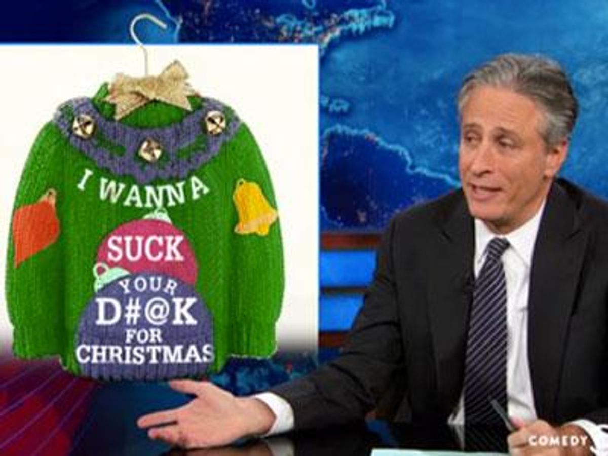 "Why stop there, Hallmark?" Stewart chided. "There are so many other terms that are open to interpretation -- yule log, candy cane, stocking stuffers. Come to think of it, I don't think any holiday has gayer verbiage. What about Santa going down the chimney? That could mean something else. Especially if there's a guy named Chimney."
