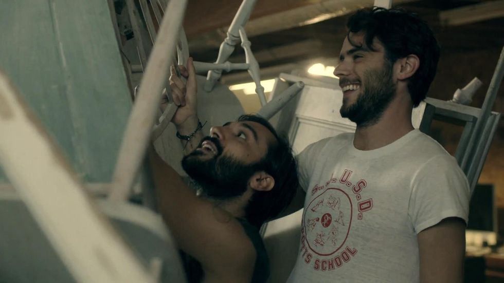 Scruff: It's not just an app on your iPhone anymore. According to Looking, if you are a gay man living in San Francisco, there's a 99.9 percent chance you have facial hair. (If you're in the outlier, you look like Jonathan Groff.) Compared to the shaved-clean image that was once synonymous with gay men, this can come as a shock to audiences outside of LGBT culture. Things get particularly hairy when we see Agustin at work as an artist's assistant drilling some wooden chairs together with new hire Scotty. Consider this a preview question for whenever Looking has its very special bear episode.