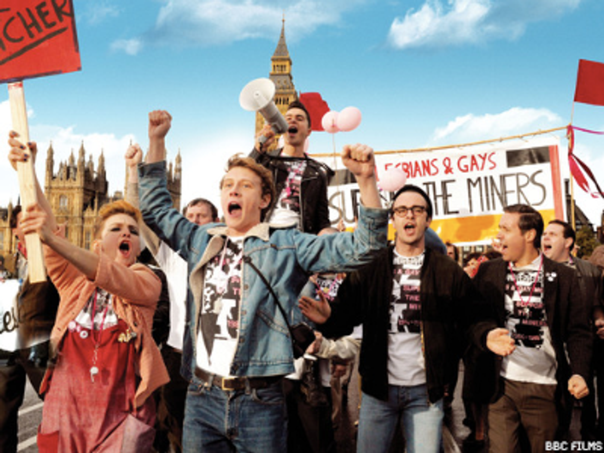 "It's the summer of 1984 -- Margaret Thatcher is in power and the National Union of Mineworkers (NUM) is on strike," read press notes about the British film. "At the Gay Pride March in London, a group of gay and lesbian activists decides to raise money to support the families of the striking miners. But there is a problem. The Union seems embarrassed to receive their support. But the activists are not deterred. They decide to ignore the Union and go direct to the miners. They identify a mining village in deepest Wales and set off in a mini bus to make their donation in person. And so begins the extraordinary story of two seemingly alien communities who form a surprising and ultimately triumphant partnership."