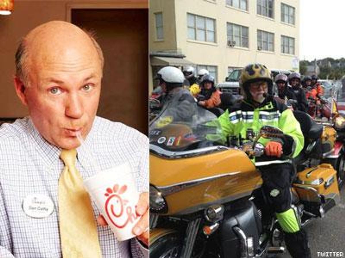Although the company's foundation might not be donating directly, Chick-fil-A President Dan Cathy tweeted a photo on Tuesday from the 2012 WinShape Ride for the Family. He wrote alongside the picture of a pack of motorcyclists: "WinShape Ride for the Family bikers locked and loaded for 200 mile ride to Wilmington out of Charleston."