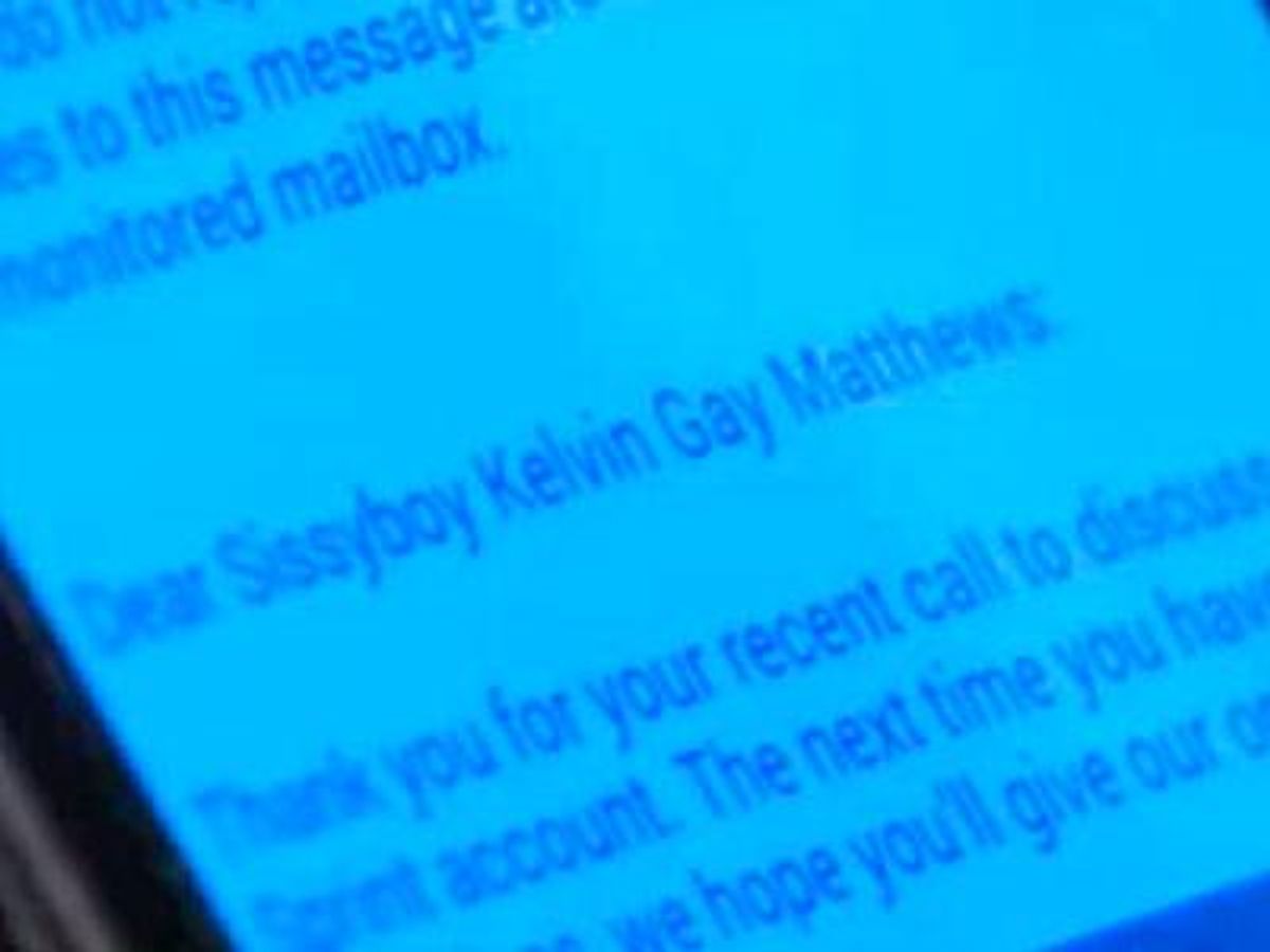 That email was addressed to "Sissyboy Kelvin Gay Matthews," the Chicagoan said. Matthews was so taken aback by the message that he contacted Sprint again, and said the manager he spoke with was dumbfounded. "She couldn't believe it."