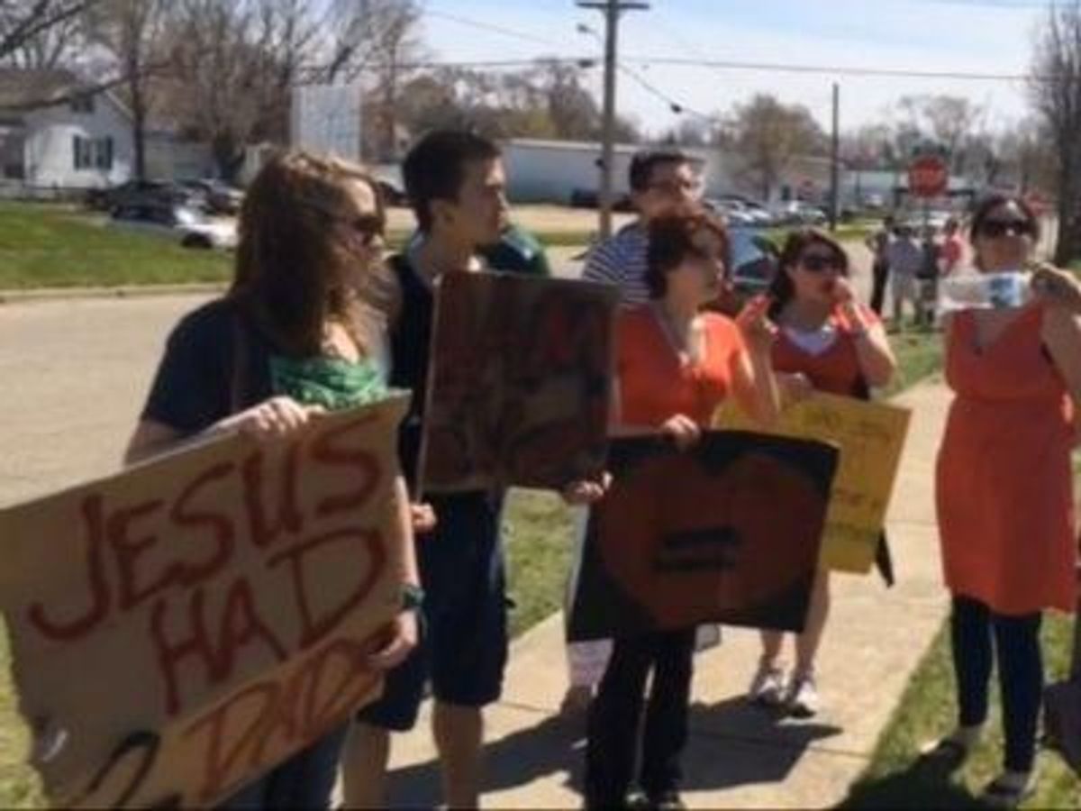Around 50 protestors gathered Saturday in front of Dieseltec, an autoshop in Grandville, Mich. that sparked headlines after its owner, Brian Klawiter, made a statement on Facebook declaring that he would not serve gay customers due to his religious beliefs, reports M Live.