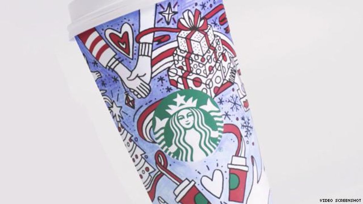 This season, Twitter is convinced that the cup features a same-sex couple holding hands. The illustration in question is part of this year's "Give Good" theme, which lets customers color in their coffee cups.