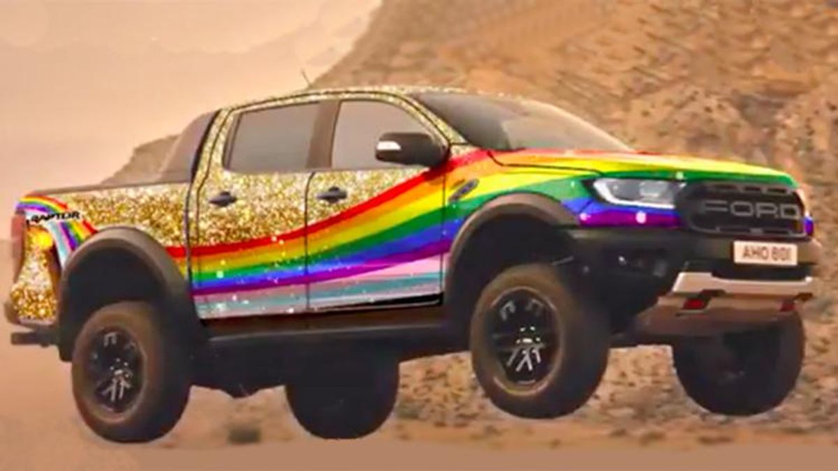 In a video released on Twitter by Ford Europe, the automaker revealed its new and improved "Very Gay Raptor" decked out in rainbows and gold glitter. In a statement, the company said it wanted to make its position as an LGBTQ+ ally that stands up to discriminatory speech "very clear."
