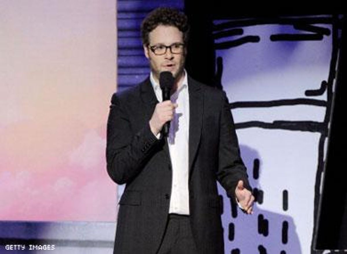Seth Rogen made a dig at singer Chris Brown and Brett Ratner, who was once set to produce the Academy Awards ceremony but pushed to quit after he used a homophobic slur in front of reporters.
