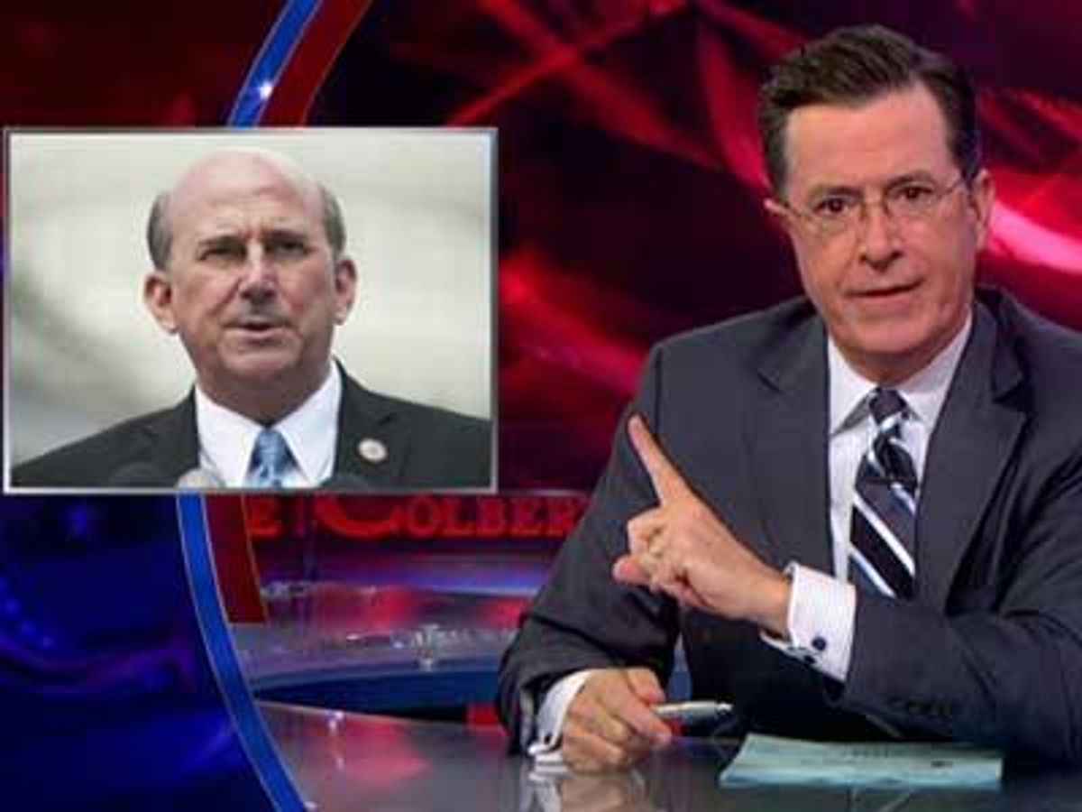 Colbert told his audience that he agreed with the paint-thinner-eating politician because he has also been the subject of mockery in the past. "I'm with you, sir. People have said to me, 'Stephen, I'm surprised you can even dress yourself. I bet you have to rub peanut butter inside your lips to remember to open your mouth to breathe. I have never met, and I hope to never meet again a man so pervasively, astoundingly, unyieldingly ignorant.' To which I say, 'well you haven't met Louie Gohmert."