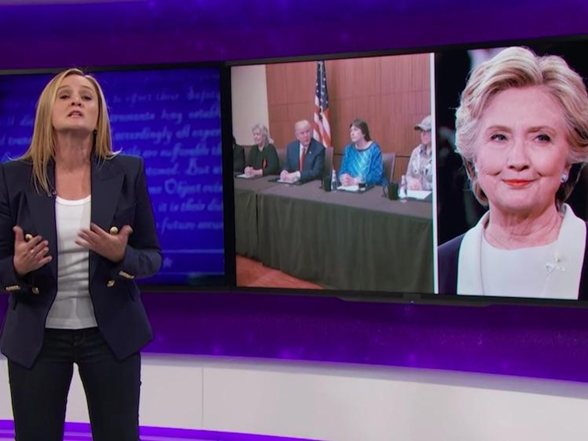 "The debate was a grotesque travesty of democracy," said Bee, on the latest episode of Full Frontal. "Trump did to Hillary, the moderators, and the viewers what he did to that chair and insulted us all the while."