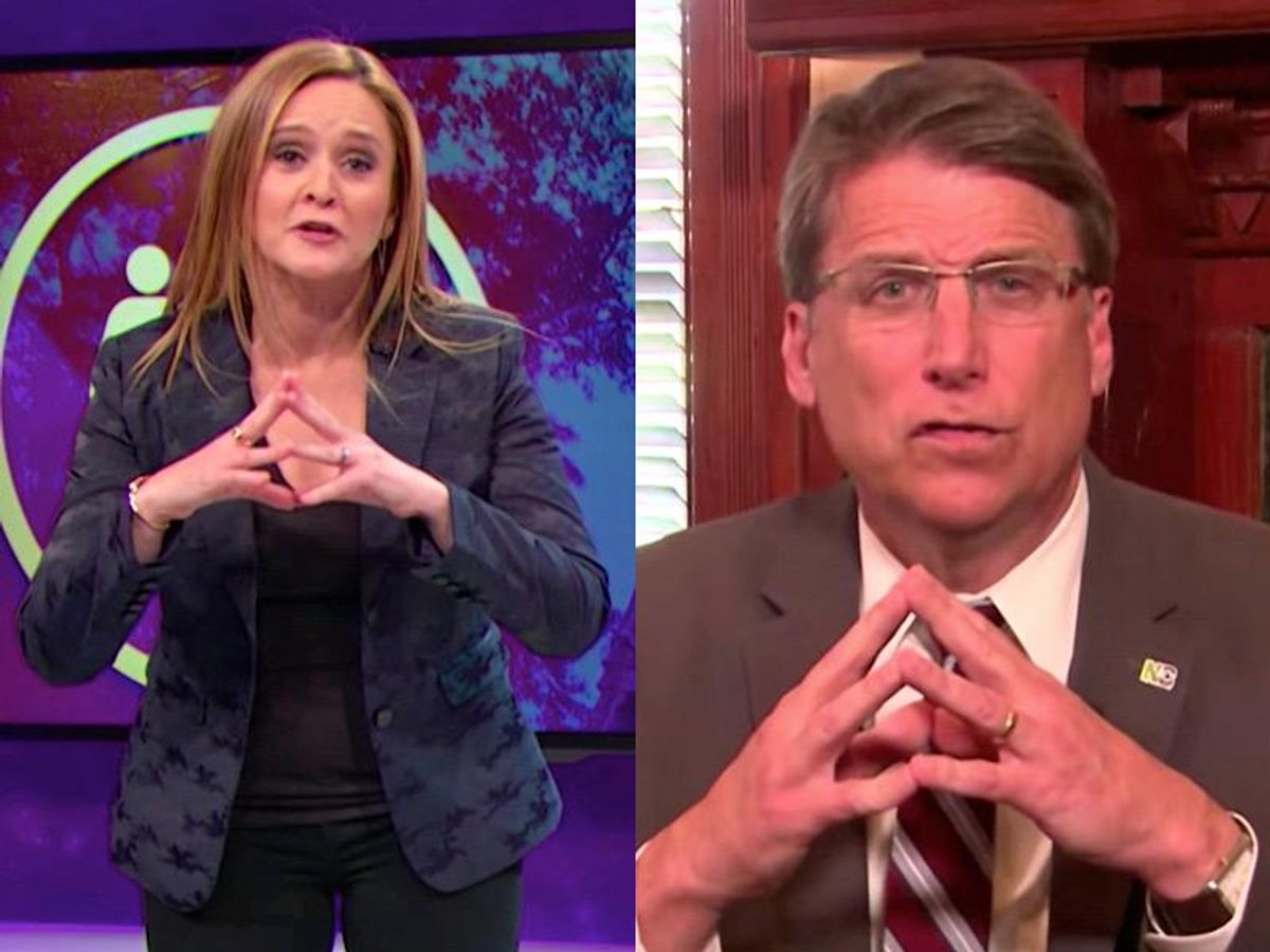 The law addressed the state's "urgent problem of LGBT people not being discriminated against enough," explained Bee, before running a clip of McCrory reciting his oft-repeated claim that the law "protects the privacy" of women and children.