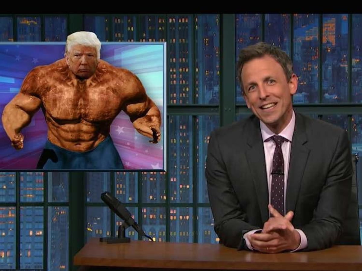 The Late Night host also ridicules Trump's assertion that he's a better LGBT ally than Hillary Clinton.