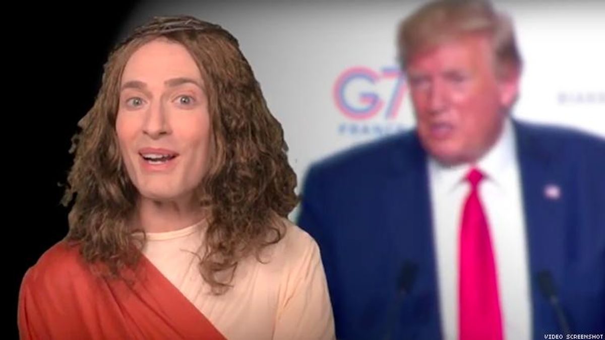 "I am joined now by the diving Miss T, our lord and savior, king of the Jews," Rainbow says. "Donald Trump, you have had a busy few days -- G7 meetings, ongoing trade wars with China, bedbugs."