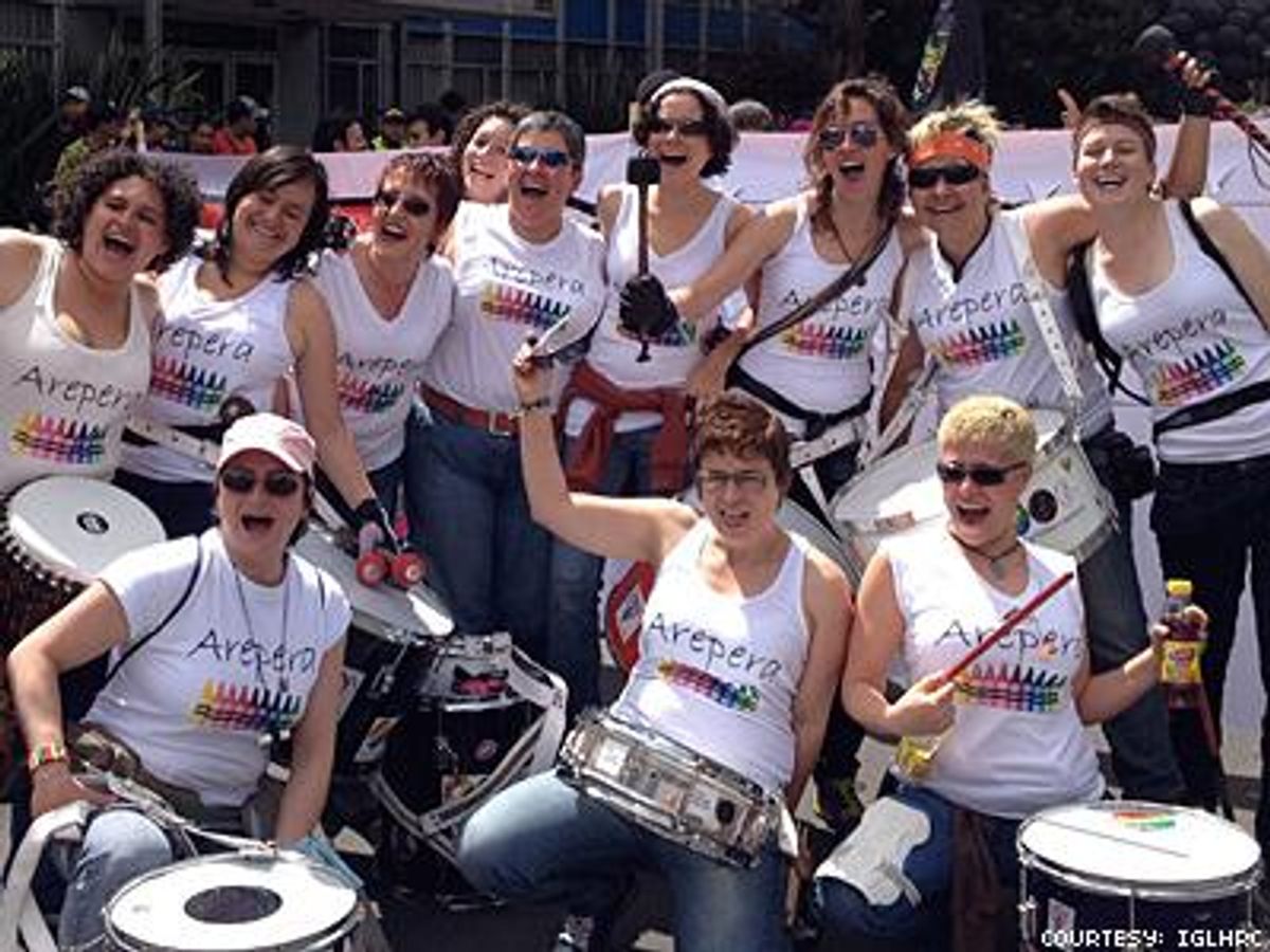 Toque Lesbico, a lesbian drumming group, in the 2012 LGBT Community March in Bogota.