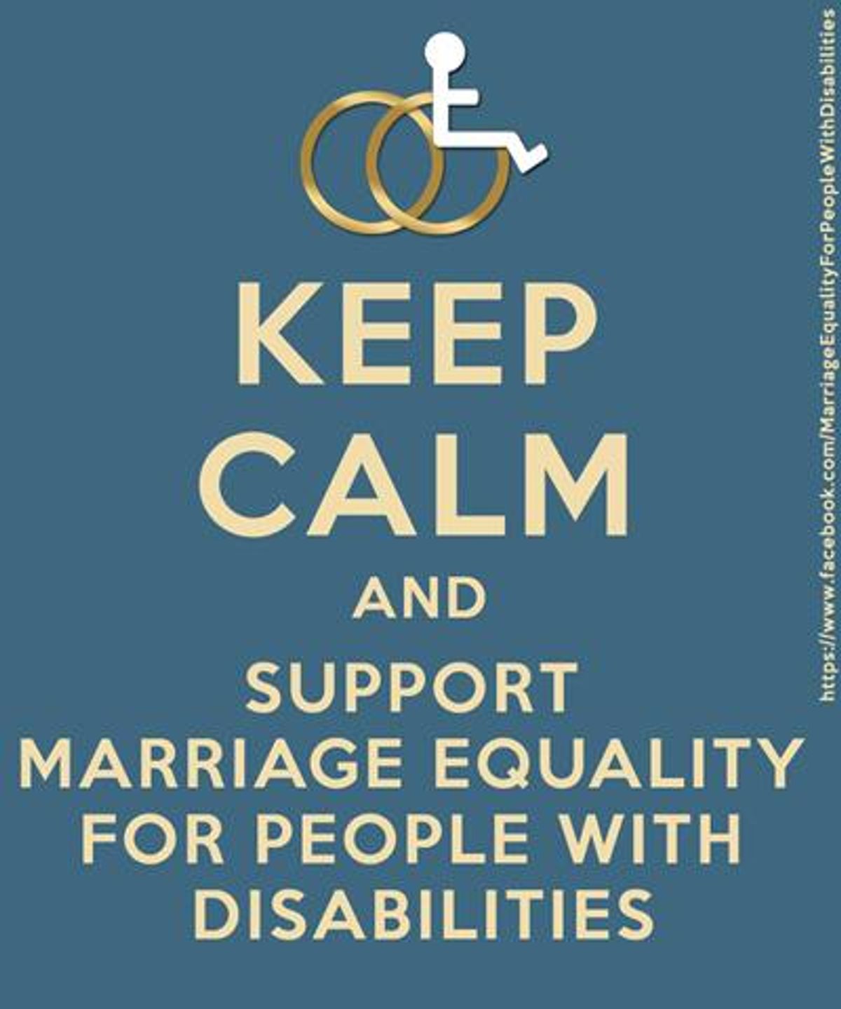 There are other solutions being discussed online, in such places as the Marriage Equality for People With Disabilities Facebook page. Leading trans and disabled activist and filmmaker Dominick Evans has created an informative video of him speaking on these issues at a Cincinnati marriage equality rally. As he puts it: