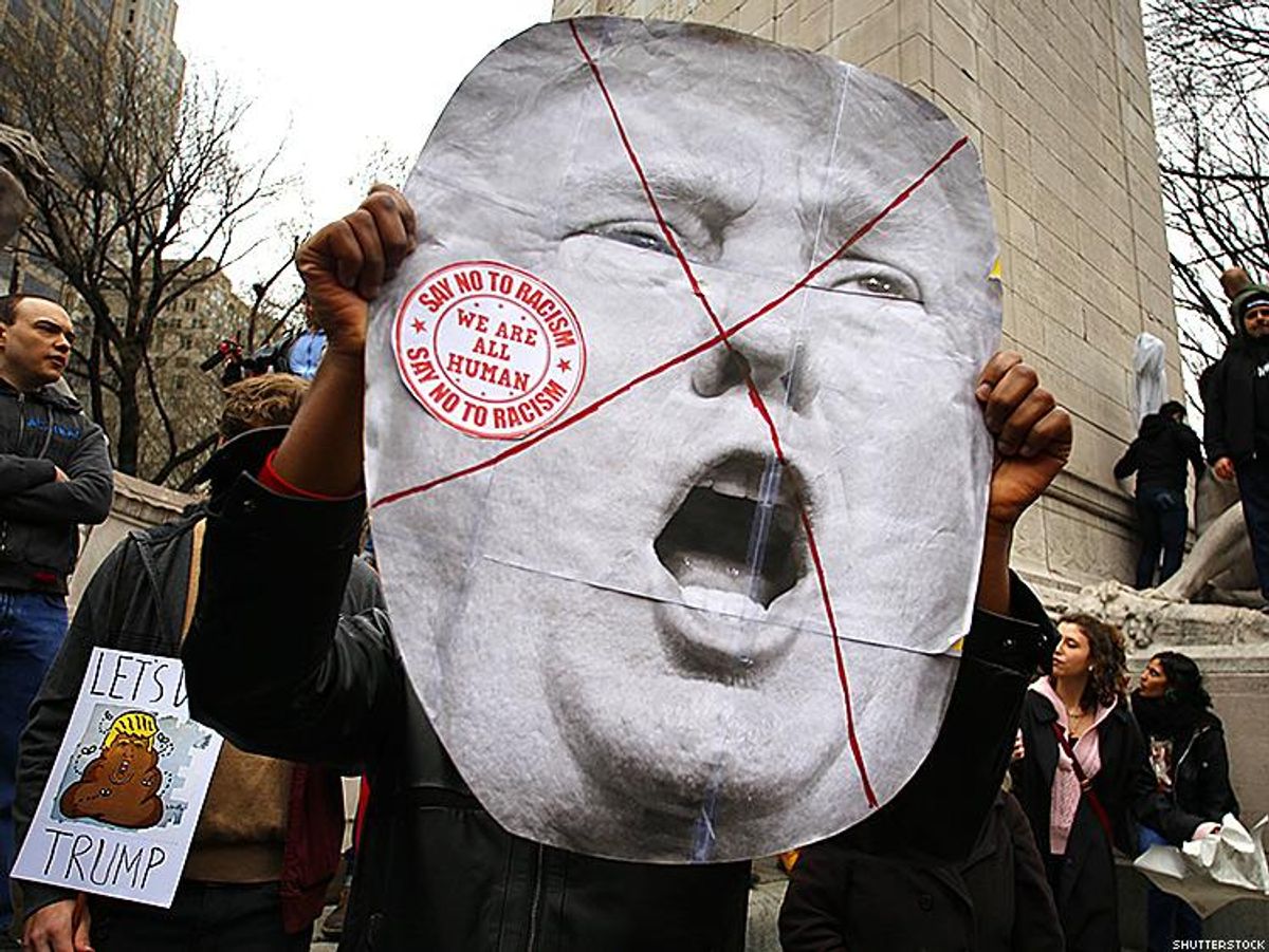 We have a bully of epic proportions now elevated to one of the highest positions in American life. Trump's tactics, not just against Clinton, but those used on the American people to reach his current pinnacle, have shamed us as a nation and threaten to scar us. Using craven lies to incite xenophobia and hate, he's encouraged Americans to turn their legitimate frustrations at the world into blame, hate, and violence. Instead of building a campaign on plans or ideas, Trump established his third act by pushing the racist lie that Barack Obama was not American. He followed that up by officially launching his presidential bid with a call to action against immigrants, specifically Mexicans. Kellyanne Conway, Mike Pence, and Trump's whole team of moral-free, apologist hacks can spin it all they want, but the truth remains -- Trump tried to convince Americans that Mexican immigrants were "rapists" who should be hated and feared, and every Muslim has an IED strapped to their hijab or tucked in their beard. In his ugly campaign that is mercifully drawing to a close, Trump embraced racism, empowered lunatics, and employed abusers and liars like Roger Ailes and Steve Bannon.