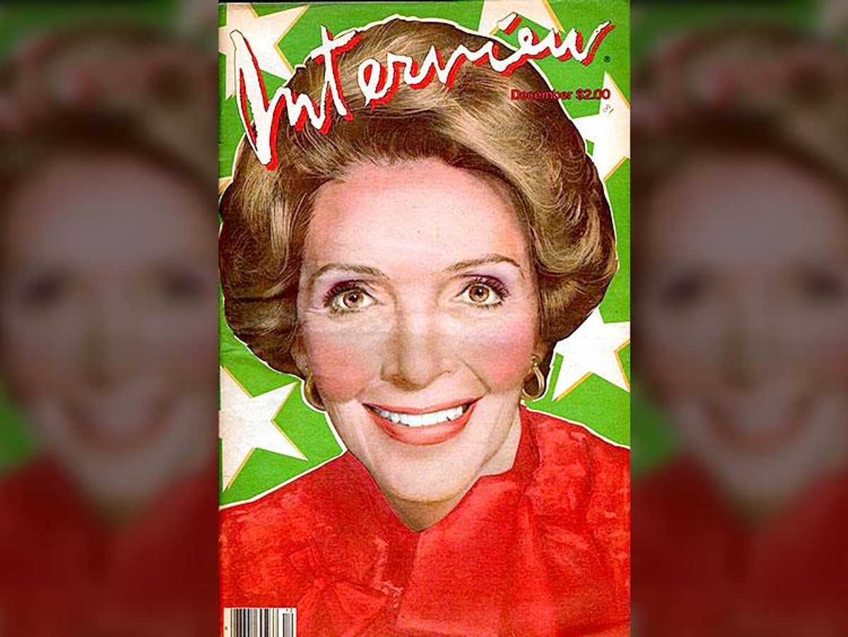 And not much changed over the years. Reagan's nonresponse to AIDS is well documented. Nancy's self-appointment as a society queen and her legendary spending only seemed to raise her value in a camp sense. In Bob Colacello's memoir of working with Andy Warhol, Holy Terror, he writes of the thrill of securing Nancy Reagan for a December cover for Interview magazine.