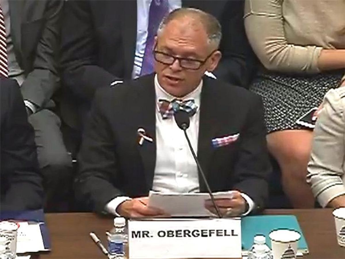Jim Obergefell, the named plaintiff in the lawsuit that led to the Supreme Court's marriage equality ruling last year, testified Tuesday in the U.S. House of Representatives about the pending First Amendment Defense Act. The legislation would allow businesses, nonprofits, and even goverment employees to discriminate, without penalty by the federal government, against LGBT people and anyone else who offends the individual or group's "religious belief or moral conviction" that marriage should be limited to opposite-sex couples and that sexual relations should occur only in such a marriage. Here is his take on the hearing before the House Committee on Oversight and Government Reform, followed by his testimony.