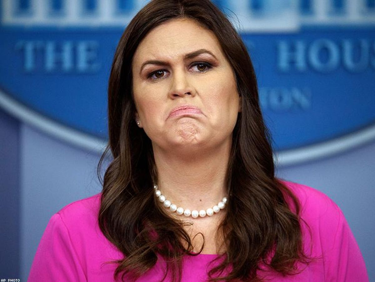 "Sarah Huckabee Sanders does not look like the kind of woman Donald Trump would choose as his chief spokesperson" is how Pulitzer-Prize winning journalist David Horsey opens a piece on the highly skilled "truth-twister" in the Los Angeles Times."Sanders looks more like a slightly chunky soccer mom who organizes snacks for the kids' game," he continued.