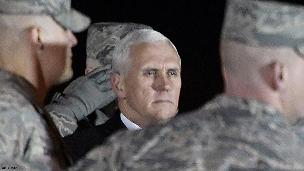 For years, the Military Religious Freedom Foundation has noted the growing efforts by evangelicals to turn the U.S. military into an instrument of their ideology and worldview. While not all evangelicals believe the same, the far more radicalized tend toward a belief called dominionism -- a wish to turn America into a nation perhaps not run as a theocratic state but at least run by extreme Christian beliefs, the military included. Hence the reason Pence, with the help of the Family Research Council and the Heritage Foundation, produced a report full of bad anti-transgender science and myths in order to justify the ban. This is not the first time military policy and leadership have been guided not by military regulations and the law but by evangelical proselytizing and beliefs.