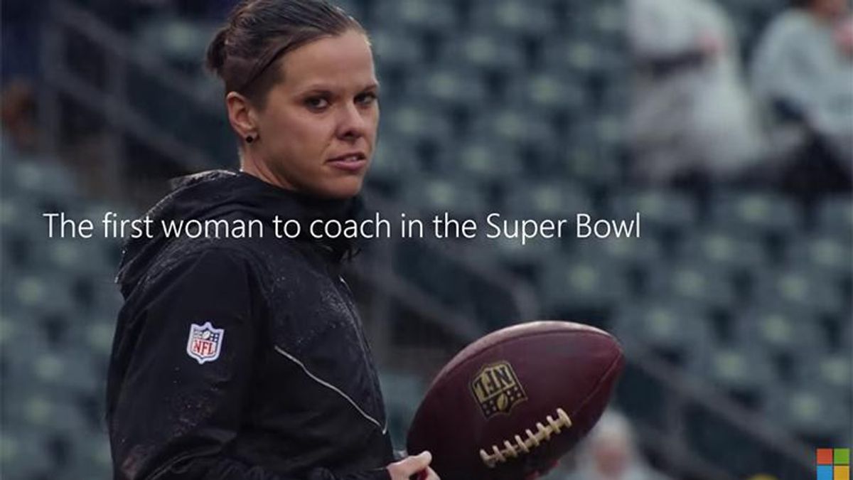 "Microsoft's effort is much more traditional and centered on the groundbreaking nature of Katie Sowers's achievements," explained Patrick Coffee, adverting correspondent at Business Insider. "The ad's theme is also more about gender equality and doesn't mention her sexuality. It's also more of a traditional product placement in that it shows her using the Surface on the field in her day job."