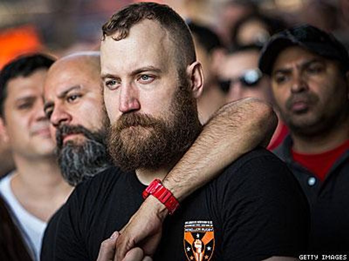 John Mirch (left) and Michael Camacho (right) participate in the Rally Against Hate, organized by LGBT New Yorkers. LGBT and antiviolence organizations including GLAAD, the NYC Anti-Violence Project, the city's LGBT Community Center, and the Transgender Legal Defense and Education Fund announced plans to join in.