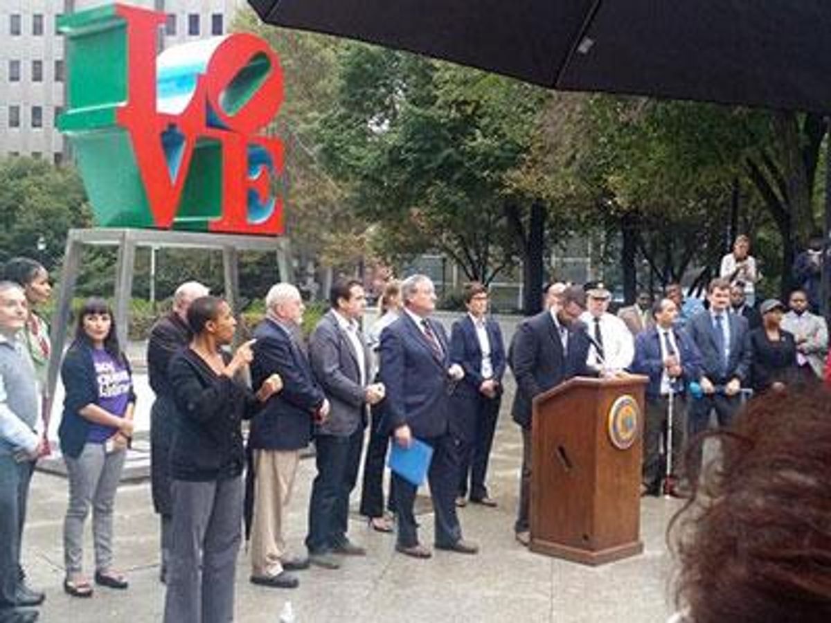 Out state representative Brian Sims also addressed the crowd, pointing out the need to amend the state's hate-crimes law to cover crimes motivated by the victim's sexual orientation or gender identity. Three people have been arrested in connection with the attack, but despite evidence that the men were targeted for being gay, it cannot be prosecuted as a hate crime under the current state law.