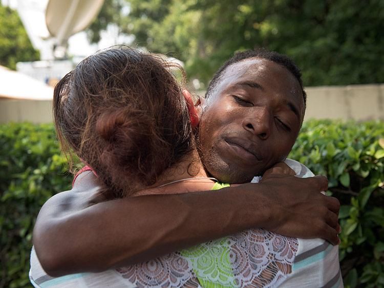The Advocate's managing editor (and the author of this story) hugs Marcus Godden.