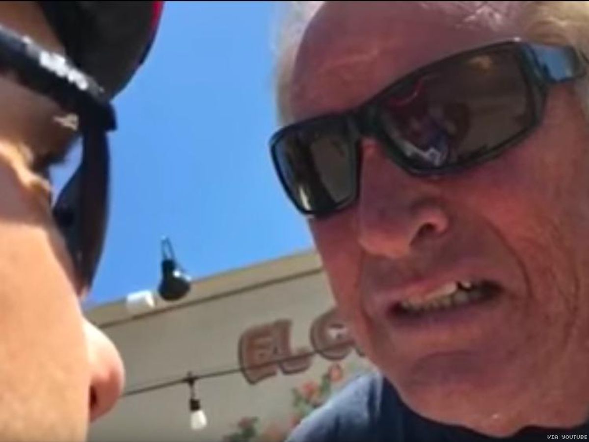 "What are you gonna do? Put it on tape? A surfer against a queer?" Lewis says in the video. He later calls the cyclist a "f****t" and a "pussy," and when the cyclist asks for his name, he replies, "My name is your worst enemy, motherfucker."