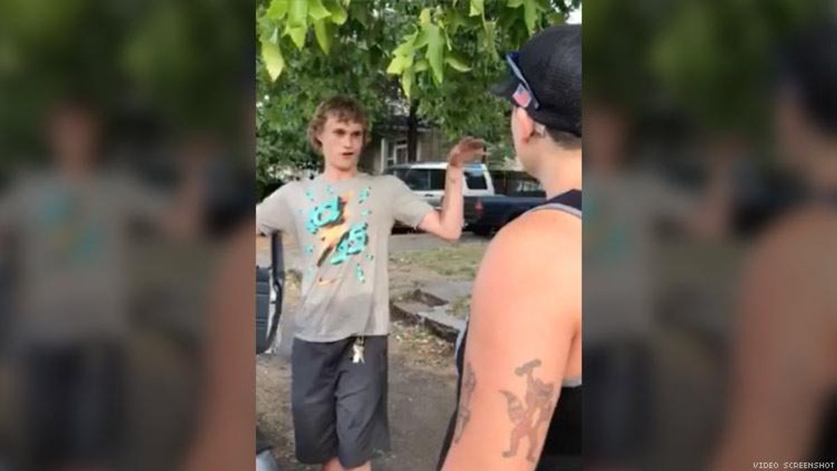 "I'll spit in your face ... I'll literally put you to fucking sleep," the man, who has not been identified, told Portland resident Trudy Dragoon while her partner, Wendy Dragoon, videotaped him, according to The Portland Mercury.