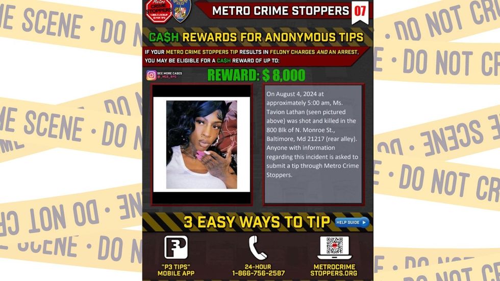 Police said this is an open and active homicide investigation and encouraged anyone with information to contact them at (410) 396-2100. Those who wish to remain anonymous may utilize the Metro Crime Stoppers tip line at (866) 7LOCKUP. You may also anonymously text a tip by visiting the Metro Crime Stoppers of Maryland website.