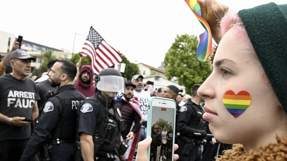 In one video of the fighting seen more than 1.5 million times, a violent melee is shown with people punching each other as police officers attempt to break up the scuffle. The user said anti-LGBTQ+ protestors attacked pro-LGBTQ+ demonstrators.