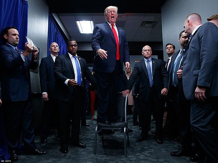 Above: Donald Trump speaks to an overflow crowd during a campaign rally, Tuesday, Sept. 6, 2016, in Greenville, N.C.