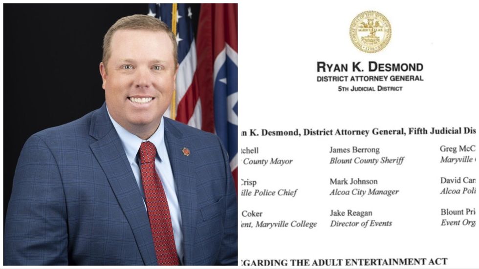 District Attorney General Ryan Desmond sent a letter to Blount County Pride organizers, officials in Blount County and the city of Maryville, and administrators at Maryville College, where the festival is to be held Saturday. The letter was obtained by the Law Dork blog and various local media.