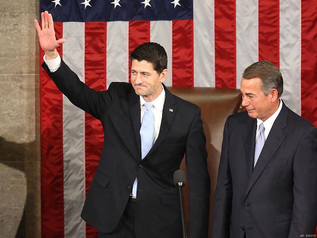 Paul Ryan accompanied by outgoing House Speaker John Boehner