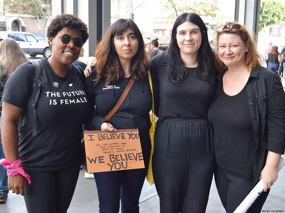Around 200 women and allies gathered in Los Angeles Monday to convince electors with their message of "no inauguration without investigation."