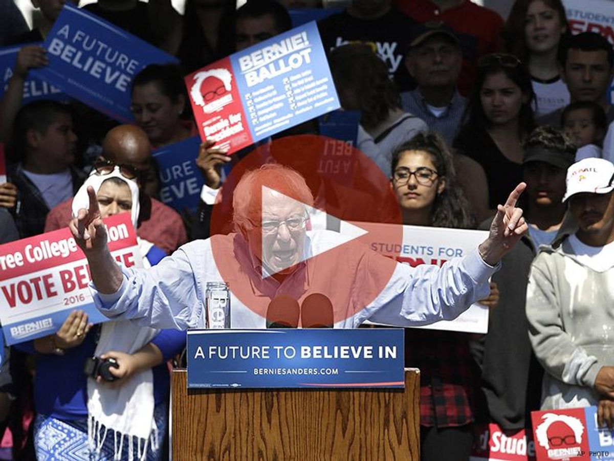 The U.S. senator from Vermont is hoping tonight's victory in West Virginia will give him momentum to defeat front-runner Hillary Clinton in California.