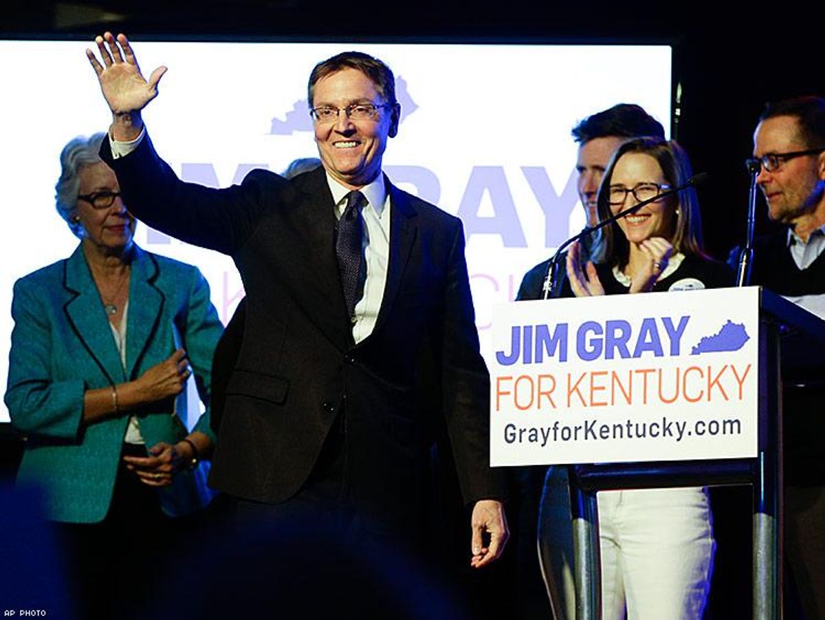 While Hillary Clinton made history by accepting her party's nomination, becoming the first woman ever to reach that elite level in politics, Gray is also a candidate for history books. He's the first openly gay man ever to win any major party's nomination for a U.S. Senate run -- winning 59 percent of the vote in the primary. He's taking on Republican incumbent Rand Paul in Kentucky -- and given Gray's repeated attacks on Paul for being distracted by national aspirations, it might have been especially inconsistent for Gray to leave the state.