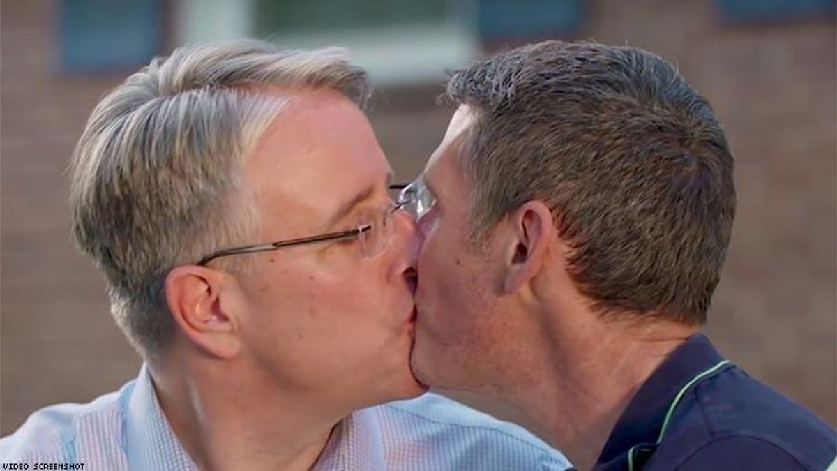 Democratic candidate Richard Madaleno kisses his husband Mark Hodge on the lips in his newest campaign ad, which debuted on Fox & Friends this morning in the Washington, D.C., market.
