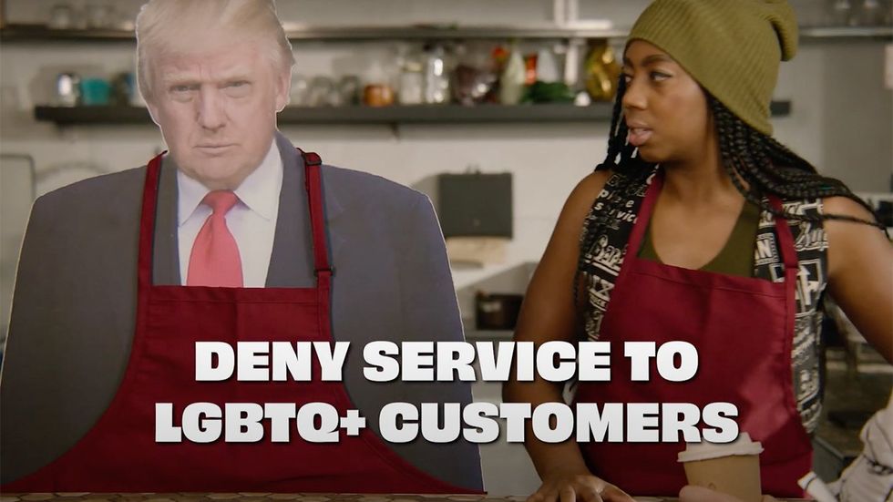 “As Gov. Walz says, voters want politicians to ‘Mind your own damn business,’” Sam Lau, spokesperson for HRC Equality Votes PAC, told The Advocate. “But Donald Trump and other MAGA politicians know their plans to interfere in our personal lives are deeply unpopular with voters of all demographics, which is why they are relying on a closing message of hate and division. Our new ad, ‘Cut It Out,’ uses humor to shine a light on these deeply weird, and deeply harmful policies — reminding voters that they have the power to protect their own rights and freedoms.”