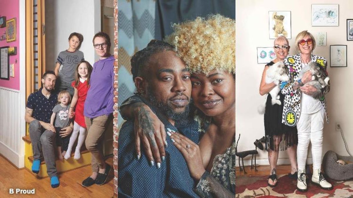 Noting that preparing and shipping the artwork to an exhibition space can run $10,000 per showing -- and funding for the trans show has fallen short of what it was for marriage equality images, Proud launched a GoFundMe page. She hopes to fund future exhibits and continue photographing more trans and gender-nonconforming couples and families (so far she's only photographed half of those who've volunteered).