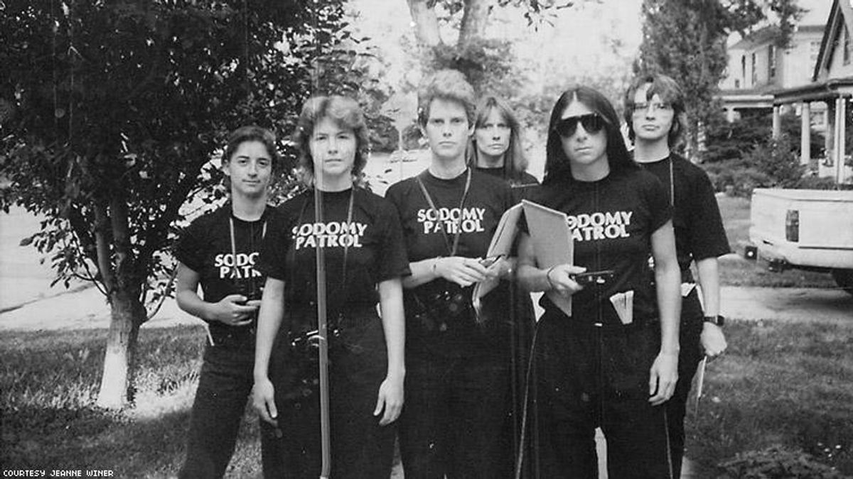 Thirty-two years ago, Jewish lesbian activist Jeanne Winer (pictured above, second from the right) patrolled Colorado malls wearing a t-shirt emblazoned with the phrase "Sodomy Patrol." It was political action, guerilla-theater style, from Winer's feminist collective protesting a Supreme Court decision to uphold a Georgia anti-sodomy law. It was, she told reporters at the time, a protest against "how far right the country has gone."