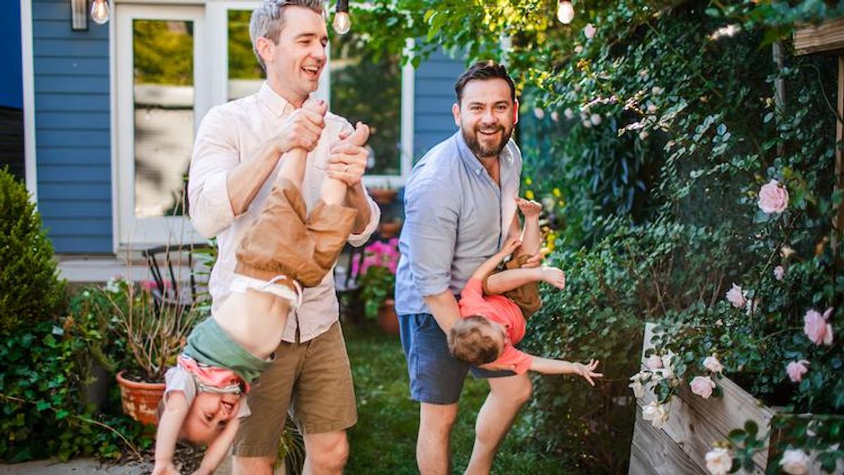 Chance Seales (left) with his husband, Hernan Winkler, and their twins. Image by Stephanie Photo KC