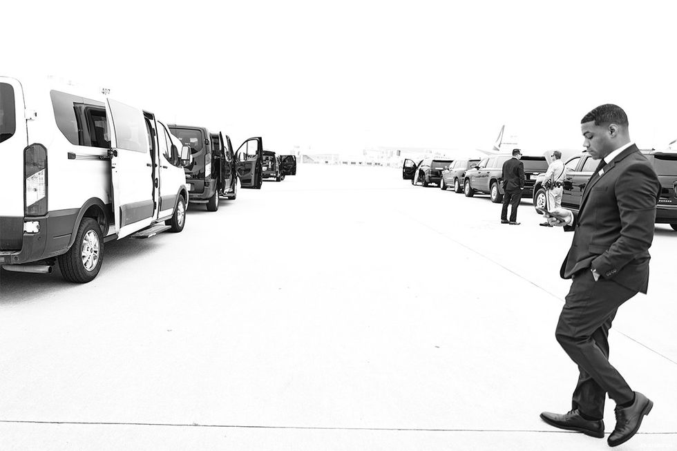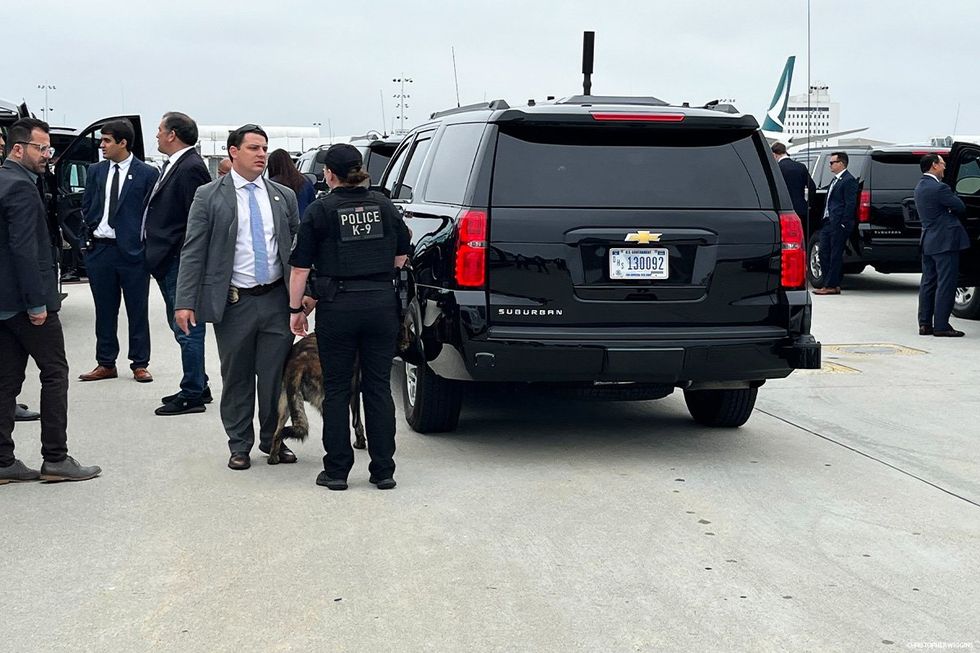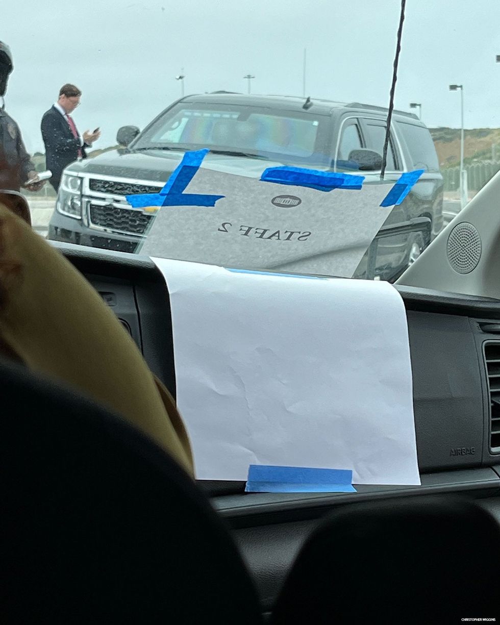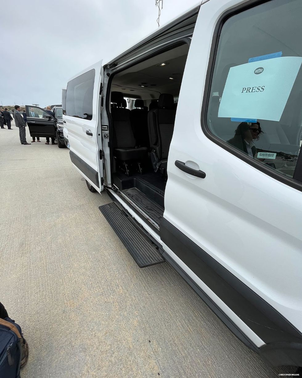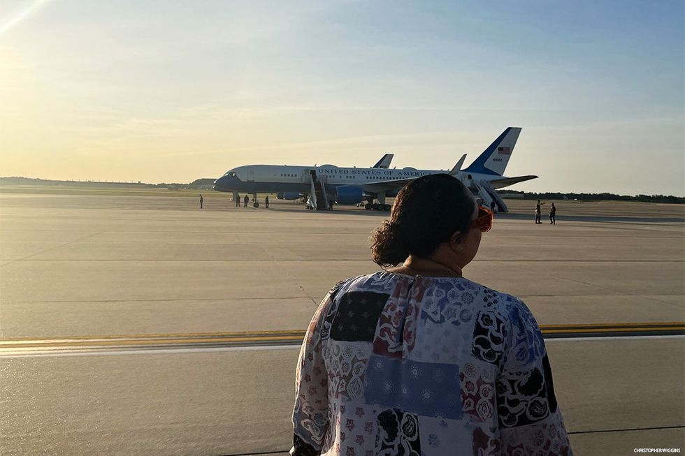 As we made our way onto the tarmac in White House-rented vans, the day started with a fender bender. The volunteer driver had taken a turn too tightly and scraped the side of the vehicle along the security barrier at the entrance to the LAX tarmac. While waiting for police officials to take photos, a Secret Service agent said she had been the second person to strike the barrier that morning, hoping to reassure her.