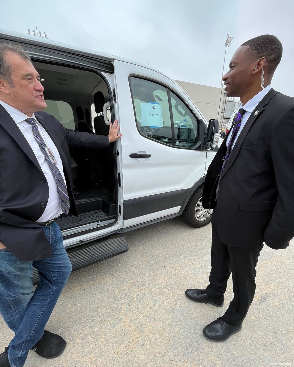 Immediately after, everybody rushed to their vans, and the motorcade was “rolling.”