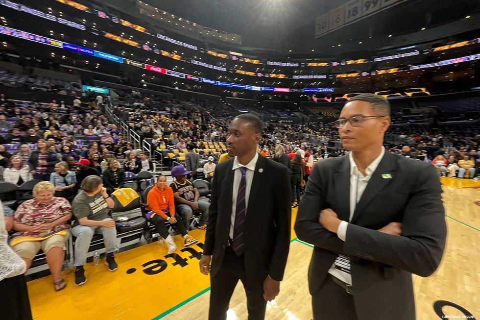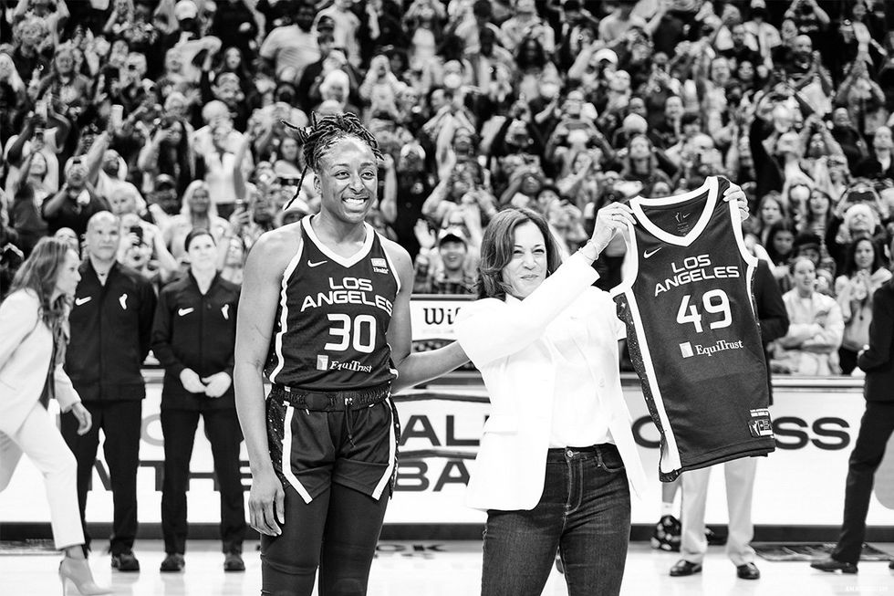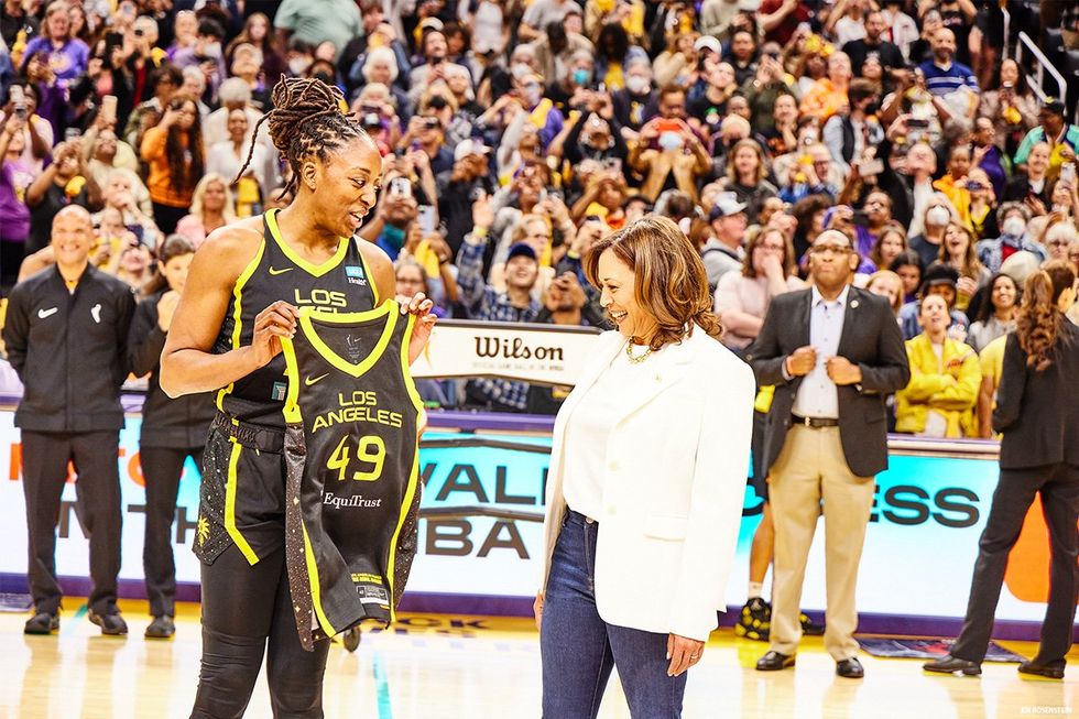 Tate had shared with us (with the agreement we wouldn’t publicize the information until we arrived at the destination) that Harris and Emhoff would be attending the WNBA home opener of the Los Angeles Sparks at Crypto.com Arena, where the team would face the Phoenix Mercury and Brittney Griner in her first professional basketball game back since she was released from wrongful detention in Russia. I had written a profile about Griner and the Biden-Harris administration’s efforts to free her last December, and the opportunity to see her was going to round that story out.