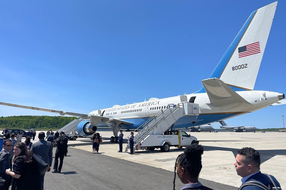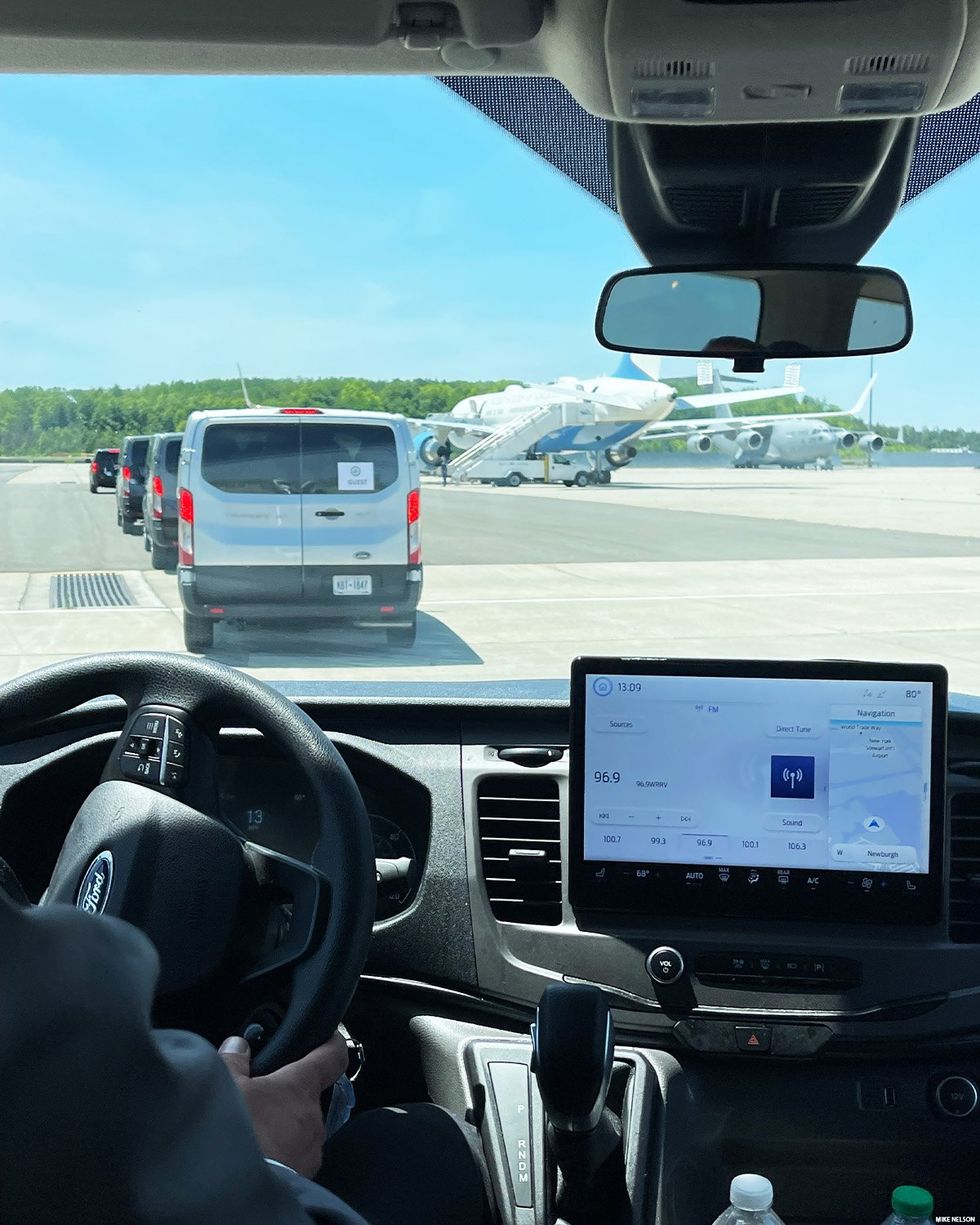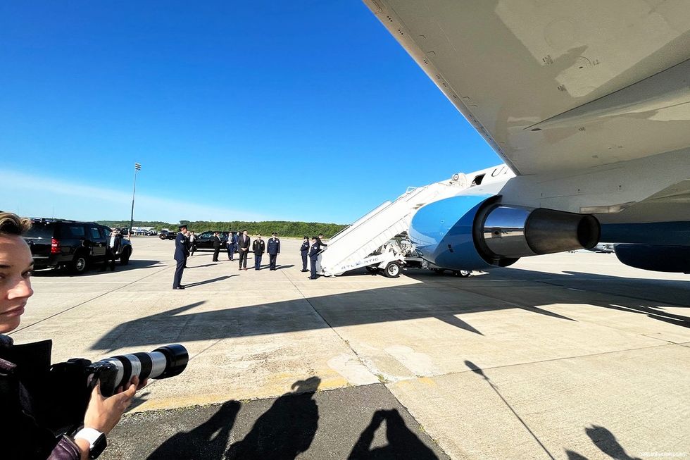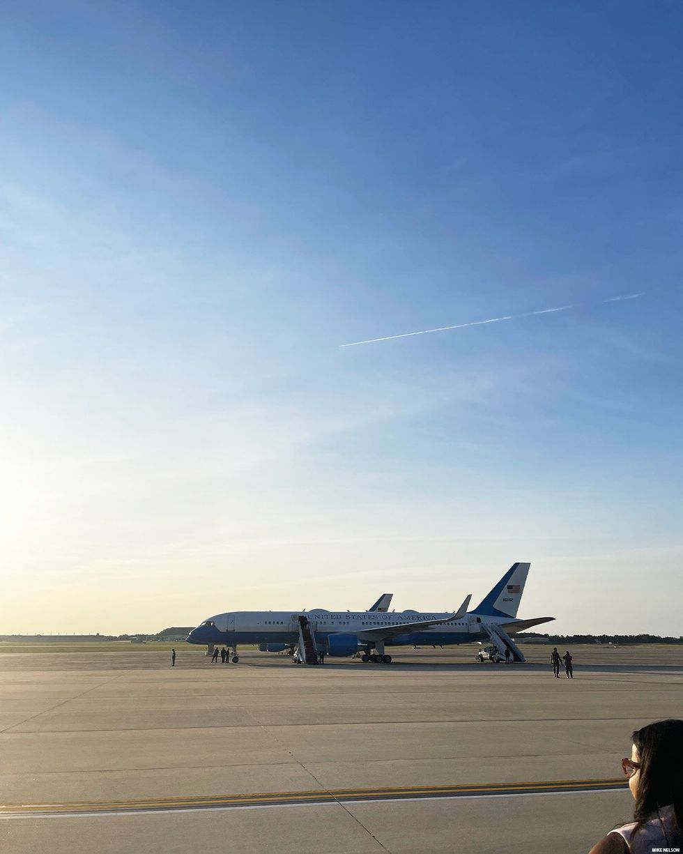 A short flight later, staff ushered us back under the wing after we landed and we captured the Second Couple’s disembarkment and entry into the armored SUV.