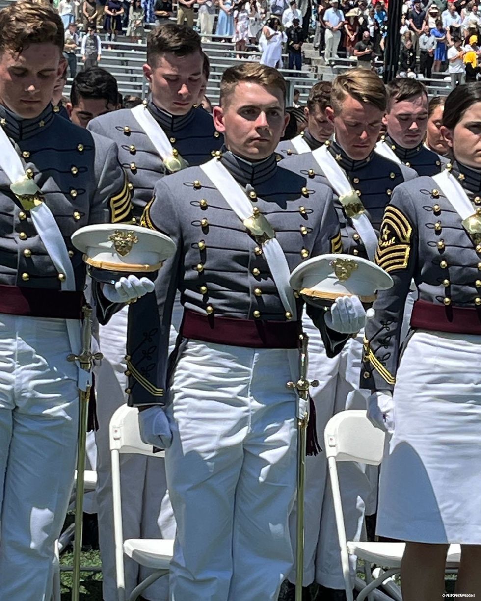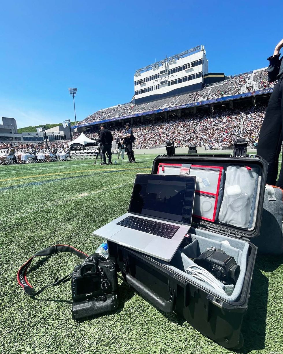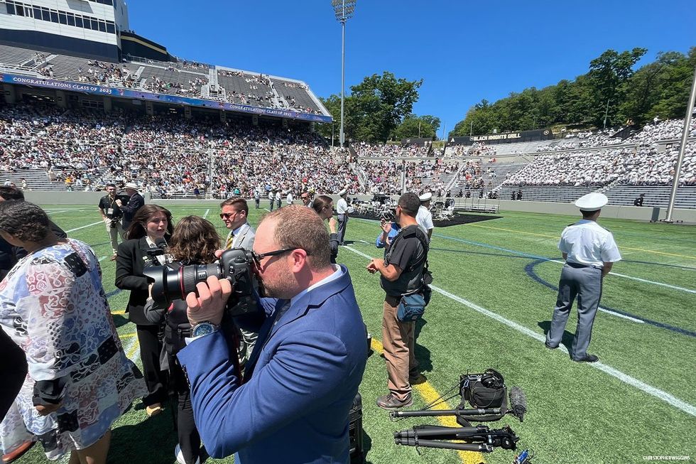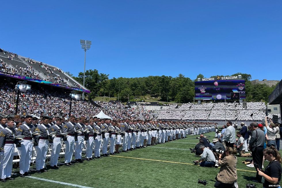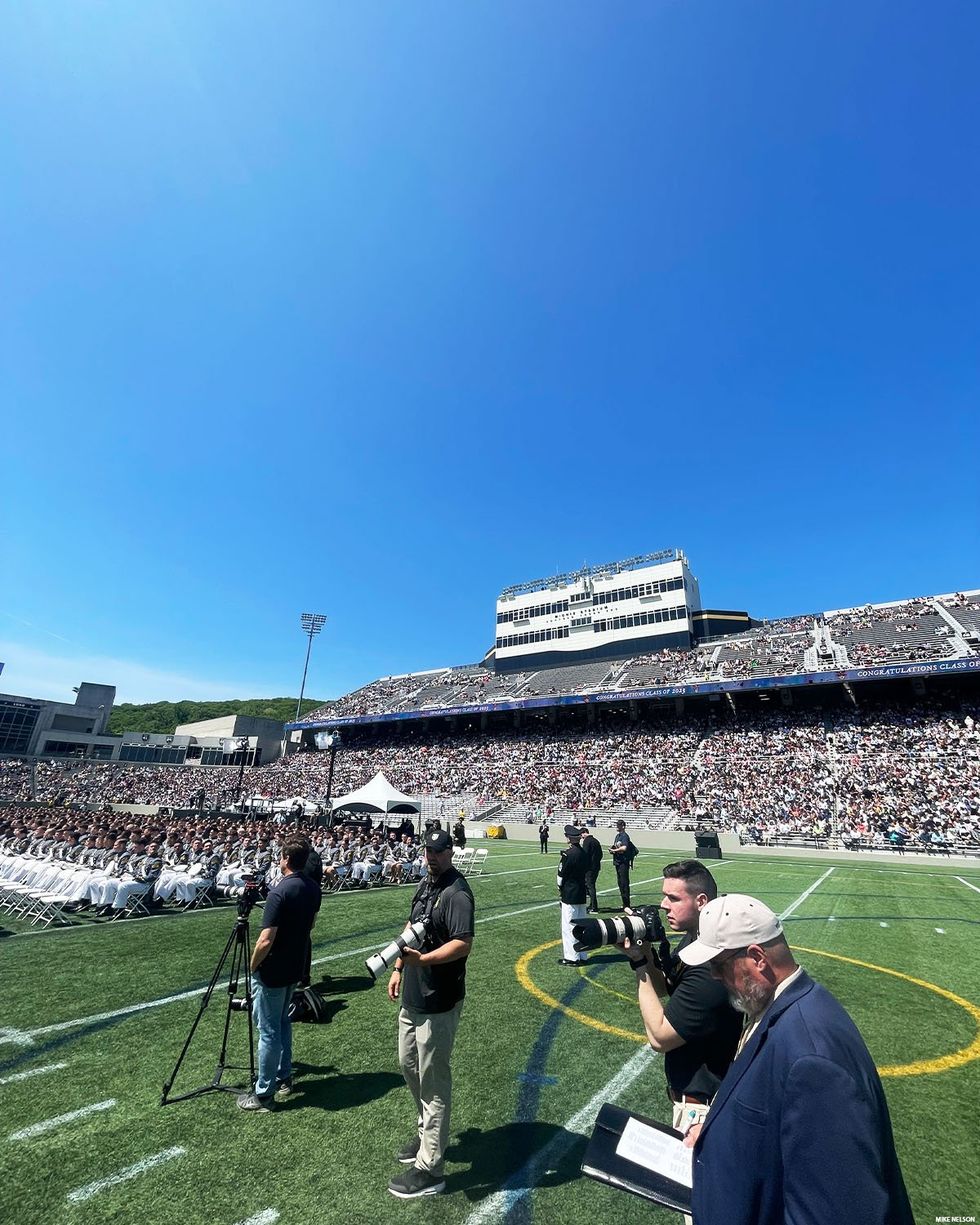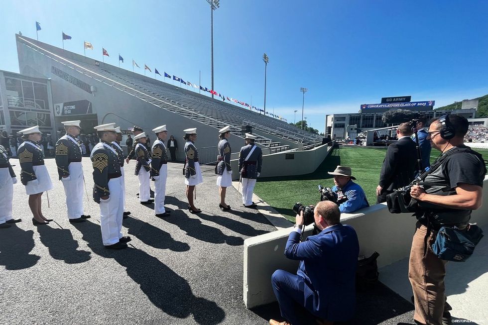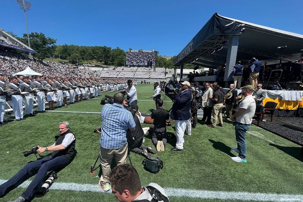After arriving at West Point’s Michie Stadium, Mike and I and a crew from CBS’s 60 Minutes were brought to a spot outside the door where Harris would walk to take her place on the dais set up in the midfield of Michie Stadium.