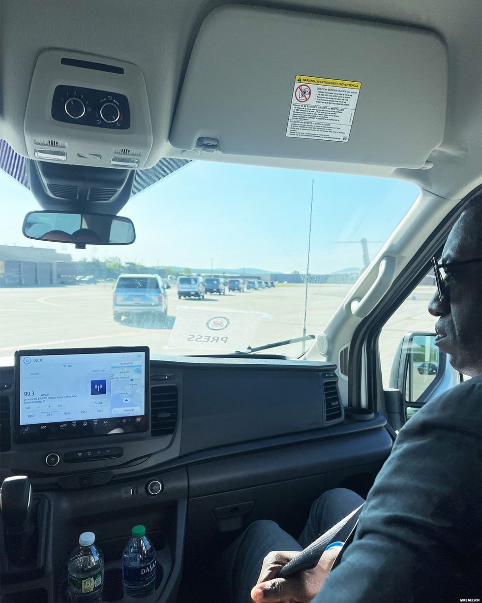 There we waited for about 30 minutes until the Secret Service agent assigned to the van indicated that it was time to go, and the hustle to the vehicles began anew.