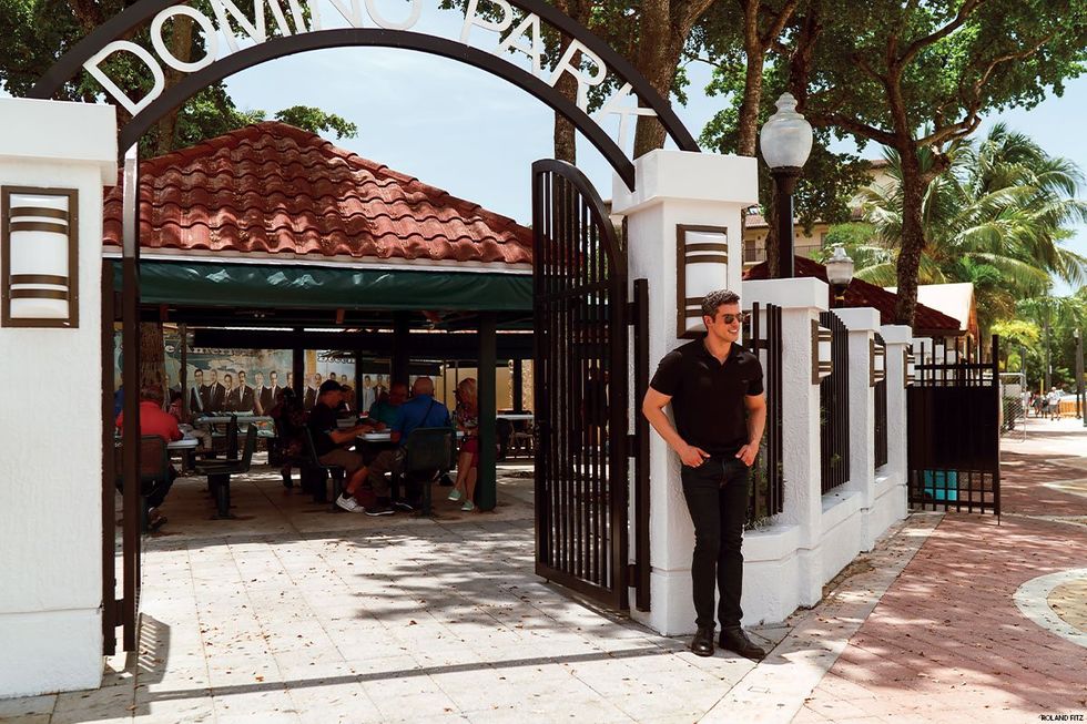 Benitez not only offers perspective as a married gay man, but as a Latino whose family emigrated from Cuba. His pride in his Cuban heritage extended to his Advocate photo shoot, where he was ecstatic to take pictures in Little Havana’s Domino Park, not far from where his grandfather once operated a barbershop.
